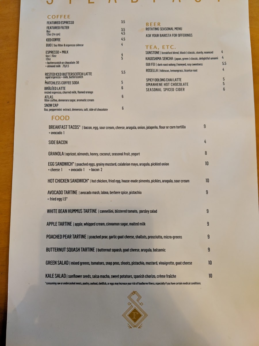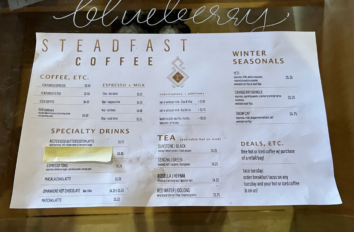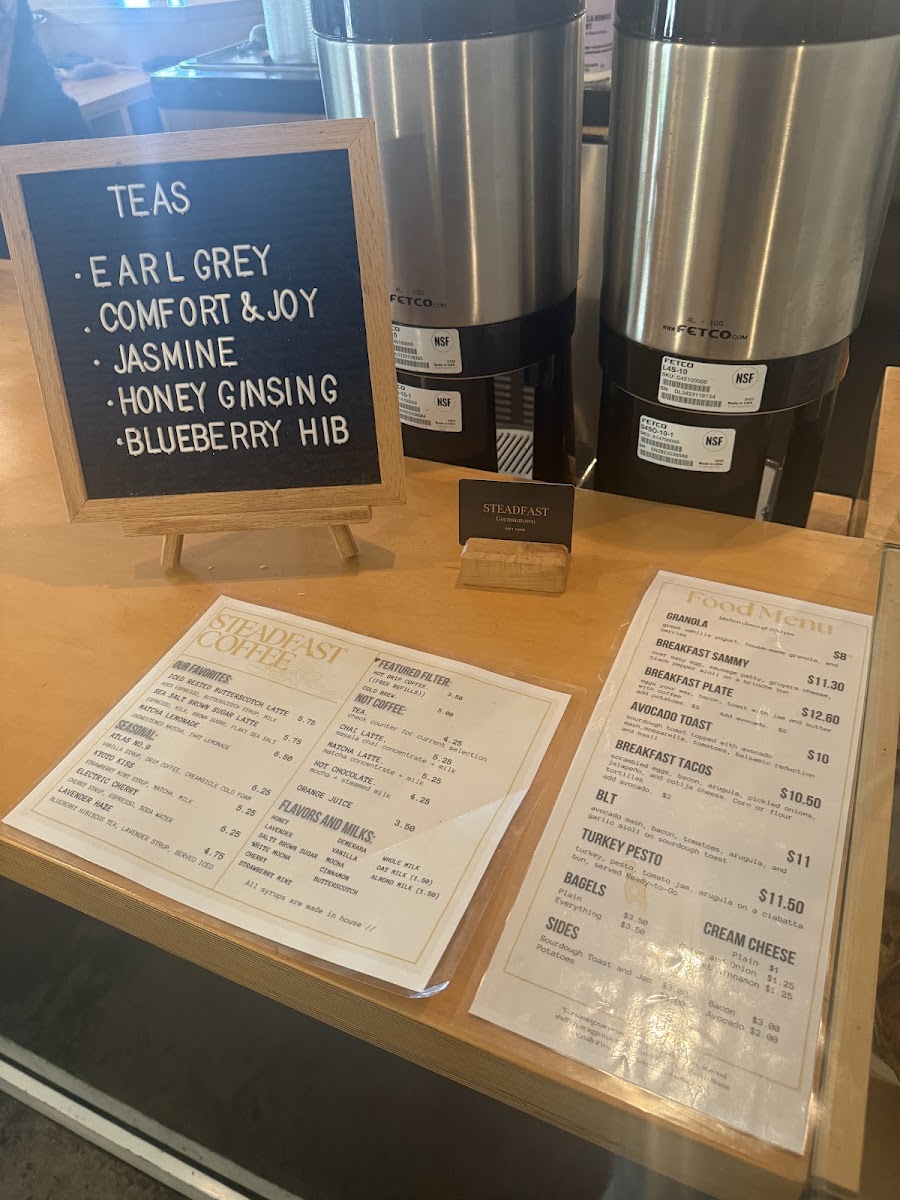 Steadfast Coffee Menu